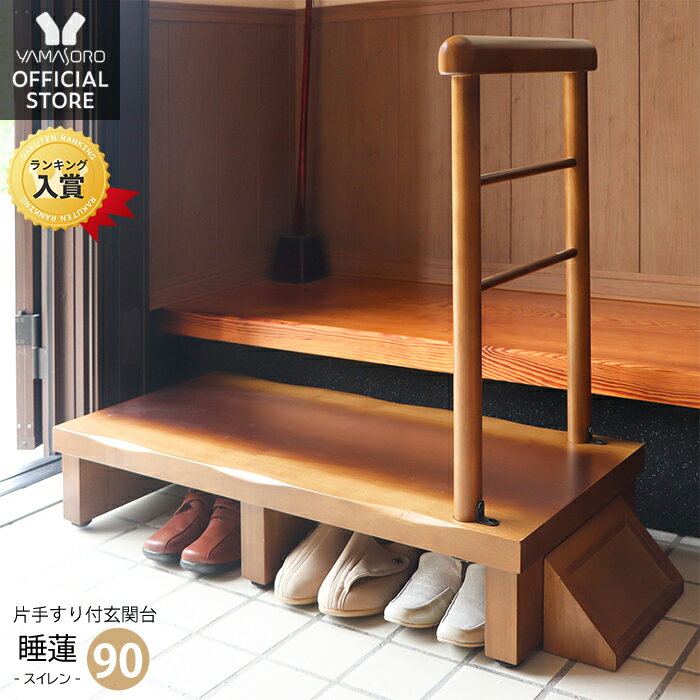 玄関台 玄関 踏み台 片側手すり付き玄関台 90cm幅 おしゃれ 高齢者 ステップ 玄関 90幅 手すり 木製 収納 昇降補助 介護 軽量 転倒防止 補助具 玄関ステップ 段差 靴 足場 歩行支援用具 介護用品 睡蓮 スイレン