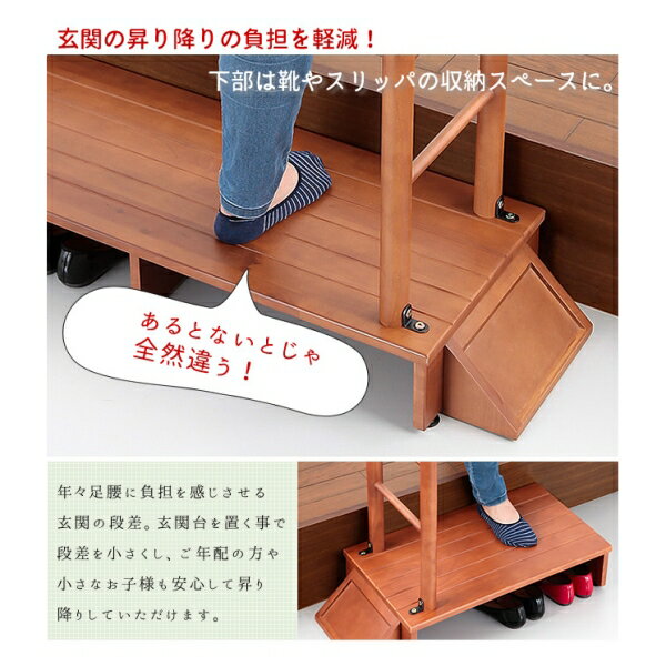 玄関 踏み台 手すり 木製 玄関台 幅90cm ステップ 台 天然木 手すり付き 踏み台昇降 ステップ台 玄関踏み台 介護 転倒防止 段差 靴収納 収納 送料無料 敬老の日 ギフト プレゼント 母の日